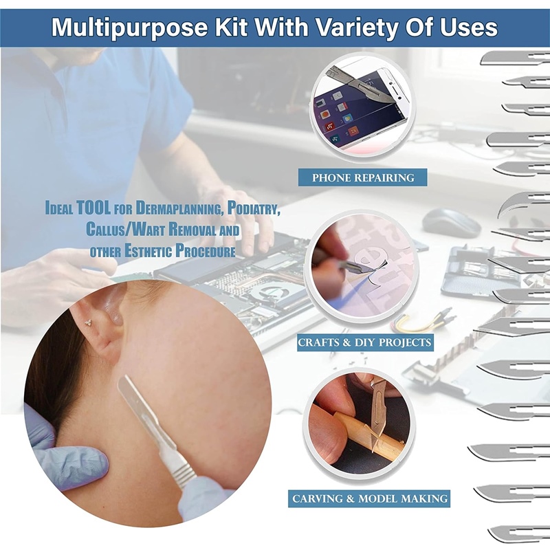 শিল্প নির্ভুলতা কাটিয়া: সংবেদনশীল উপকরণগুলির সুনির্দিষ্ট এবং তীক্ষ্ণ কাটা প্রয়োজন এমন চাকরির জন্য, অ-চিকিত্সা সংস্থাগুলি মাঝে মধ্যে অস্ত্রোপচার হ্যান্ডলগুলি ব্যবহার করে।